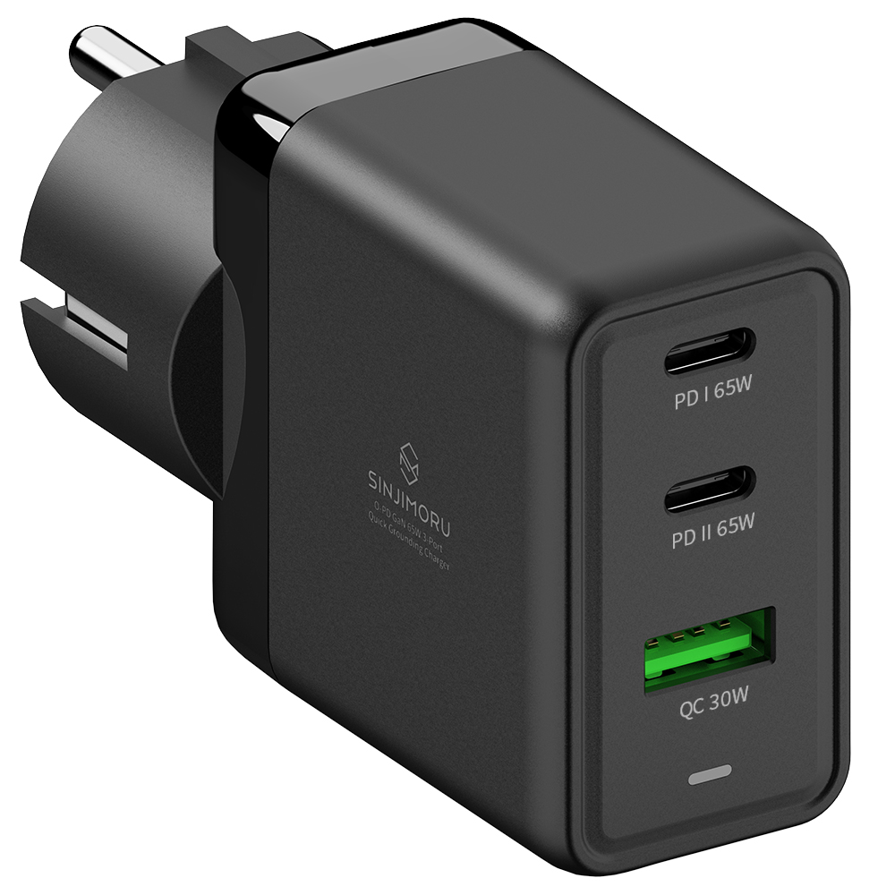 신지모루 O PD GaN 65W 접지 3포트 초고속 충전기, 블랙, 1개